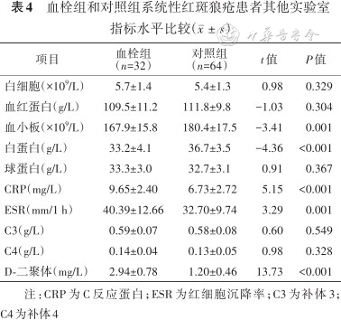 血栓组和对照组系统性红斑狼疮患者其他实验室指标水平比较()