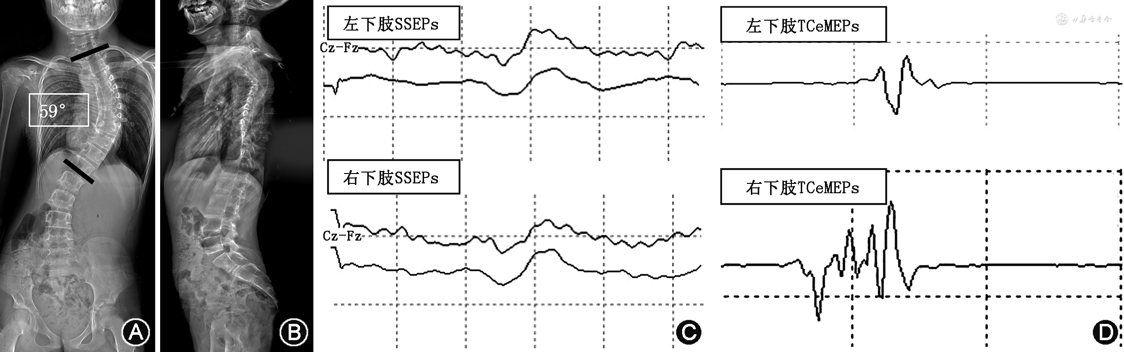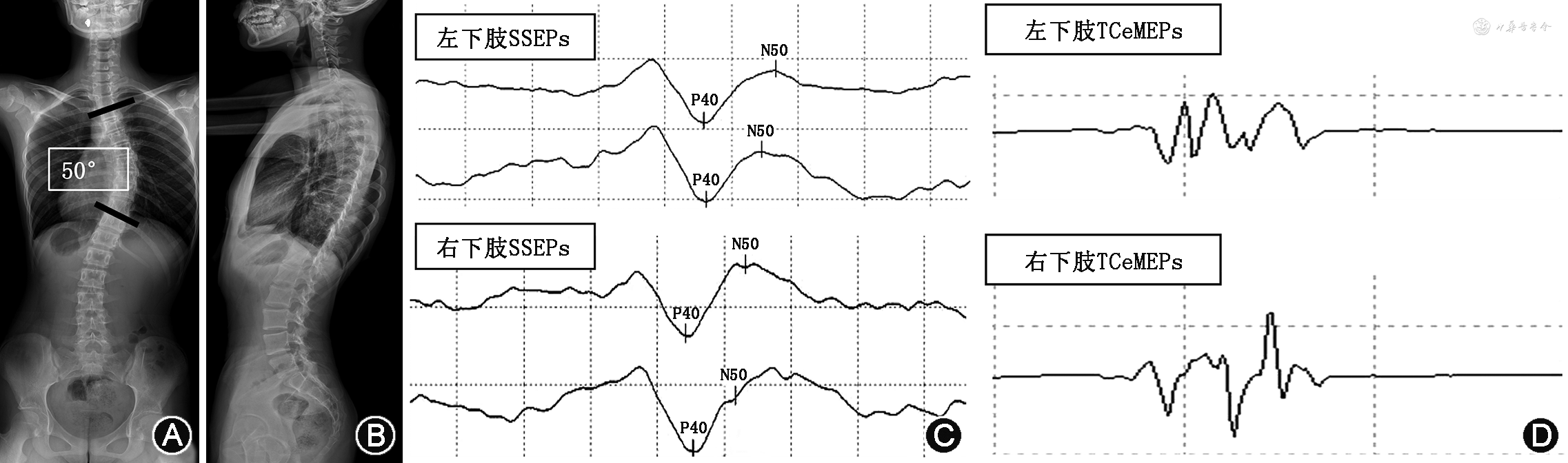 患者术中神经电生理监测应用加拿大XLTEK公司肌电诱发电位仪或美国美敦力公司NIM-ECLIPSE神经监护仪完成,SSEPs和TCeMEPs监测均从手术开始持续到手术结束。