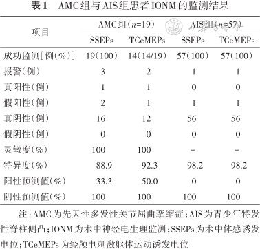 注:AMC为先天性多发性关节屈曲挛缩症;AIS为青少年特发性脊柱侧凸;IONM为术中神经电生理监测;SSEPs为术中体感诱发电位;TCeMEPs为经颅电刺激躯体运动诱发电位