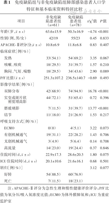 | 项目 | 非免疫缺陷患者组(n=61) | 免疫缺陷患者组(n=78) | t/χ2值 | P值 |