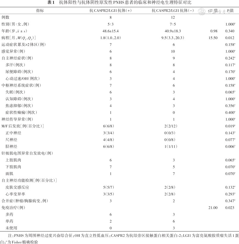 抗体阳性与抗体阴性原发性PNHS患者的临床和神经电生理特征对比