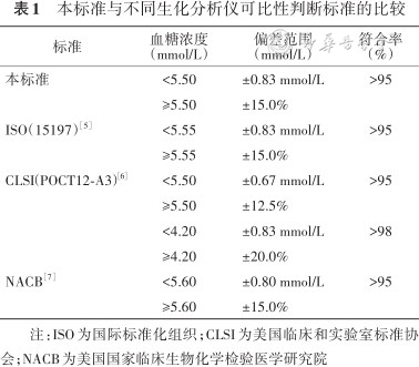 本标准与不同生化分析仪可比性判断标准的比较