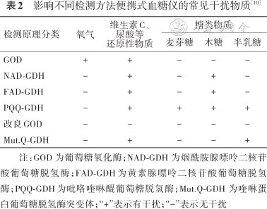 影响不同检测方法便携式血糖仪的常见干扰物质[10]