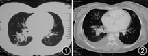 患者女,32岁。已婚,汉族,护士。因发热伴胸闷、气急1周于2013年1月10日以"肺炎"收入院。患者于2012年12月8日顺产一女。产后第10天出现一次发热,体温39℃,静脉滴注美洛西林钠(4 g,2次/d)3 d后热退。入院一周前再次出现畏寒发热,体温最高40℃,伴有咽痛,咳嗽、咳少许白痰,胸闷气急,再次静脉滴注美洛西林钠(4 g,2次/d)治疗2 d未见缓解。后至当地医院住院,胸部CT:右下肺炎症,右侧胸腔积液(图1)。静脉滴注哌拉西林/他唑巴坦(4.5 g,1次/8 h)、莫西沙星(0.4 g,1次/d)治疗3 d,体温无明显下降,2013年1月8日起静脉推注甲泼尼龙(40 mg,2次/d),静脉滴注丁胺卡那(0.4 g,1次/d),口服乙胺丁醇片(0.75 g,1次/d),治疗2 d后体温波动在37.5~38.0℃。病程中患者胸闷气急进行性加重。既往体健,2年前流产一次。否认慢性病及传染病史。无吸烟、饮酒嗜好。