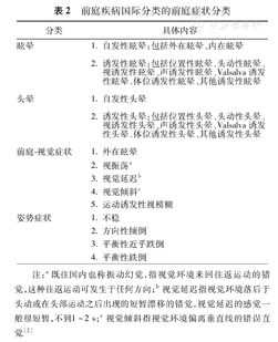ICVD第1层中的症状分类和定义首先完成并于2009年正式发表[2]。ICVD将前庭症状分为4大类[2](表2)。前庭症状分类和定义将有助于提高病史采集质量,改善分析临床资料的视角。
