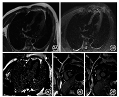 患者男性,31岁,菜贩。发热10 d伴关节痛3 d于2018年10月16日入院。入院前10 d受凉后出现发热、咽痛,入院前3 d出现左踝关节痛,随之双侧肩和肘关节疼痛,无呼吸困难和双下肢水肿,自测体温波动在38.5~39.2 ℃,以"发热待查"收入院。既往体健,12年前因外伤行脾脏切除术。家族史无特殊。体检:体温38.5 ℃,脉搏99次/min,呼吸20次/min,血压130/70 mmHg(1 mmHg=0.133 kPa)。无皮下结节,环形红斑,扁桃体Ⅱ度肿大,心肺查体无阳性体征,左踝关节红肿伴皮温升高。入院实验室检查:白细胞总数、红细胞沉降率(ESR)、C反应蛋白、抗链球菌溶血素均明显升高(表1),咽拭子未分离到A组β溶血性链球菌,尿常规、大便常规、肝肾功能、电解质、氨基末端B型利钠肽前体(NT-ProBNP)、心肌标志物、降钙素原、补体、免疫球蛋白、血培养等指标均正常。X线胸片和心脏彩色超声显示未见明显异常。心电图为窦性心律,Ⅰ度房室传导阻滞(atrioventricular block,AVB)。入院第5天心电图为窦性心律,完全性房室传导阻滞(complete atrioventricular block,CAVB)伴交界区逸搏,心率波动在33~45次/min(图1),无黑矇、晕厥。考虑发病前有受凉咽痛症状,满足急性风湿热(acute rheumatic fever,ARF)修订版琼斯标准中的1个主要标准和4个次要标准,临床诊断ARF,给予阿司匹林肠溶片(1.5 g,6 h 1次)、青霉素(320万单位,8 h 1次)、甲泼尼龙琥珀酸钠(120 mg,1次/d,3 d)治疗,糖皮质激素治疗后第2天,完善心脏磁共振检查(cardiac magnetic resonance,CMR)未见异常(图2)。积极抗风湿治疗后发热、关节痛明显改善,体温、血常规、C反应蛋白、ESR、抗链球菌溶血素指标逐渐恢复正常(表1),心脏节律由CAVB逐渐改善为Ⅱ度AVB、Ⅰ度AVB,最终恢复正常,出院后建议给予风湿热二级预防,每月肌肉注射长效青霉素持续5年。