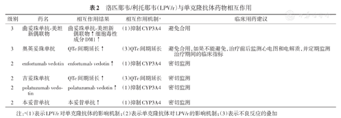 | 2 | 拉帕替尼 | LPV/r↑( | 2)抑制CYP3A4、P-糖蛋白外排转运体 | 密切监测 |