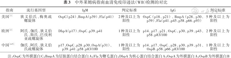中外莱姆病指南血清免疫印迹法(WB)检测的对比