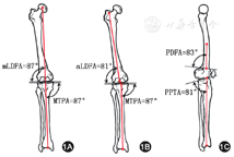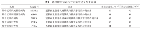 mLDFA示股骨远端机械轴外侧角;MTPA示胫骨近端内侧角;PDFA示股骨远端后方角;PPTA示胫骨近端后方角