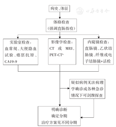 结直肠癌诊断步骤见附图1。诊断结束后推荐行cTNM分期(附录及附表1)。