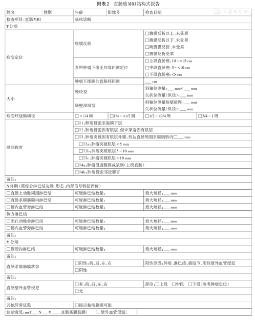 推荐使用直肠癌MRI结构式报告,模板见附表2。