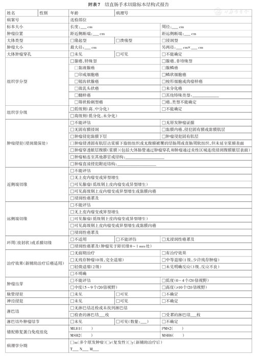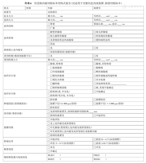 结直肠内镜切除标本结构式报告(仅适用于完整的息肉或黏膜、肠壁切除标本)