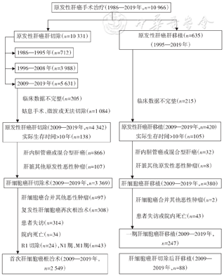 1986年1月至2019年12月我院肝胆中心连续收治原发性肝癌拟行根治性肝切除和肝移植患者10 966例,其中接受肝切除治疗10 331例,接受肝移植治疗635例。