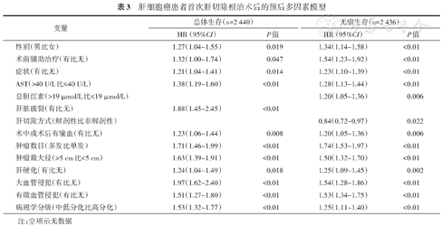 肝细胞癌患者首次肝切除根治术后的预后多因素模型