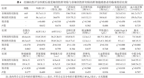 经倾向性评分匹配后接受解剖性肝切除与非解剖性肝切除的肝细胞癌患者的临床特征比较