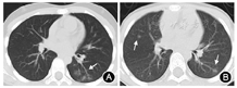 | 13 | 男 | 8 | 无 | 磨玻璃影 | 相仿 | 阳性 | 阴性 | 正常 | 正常 |