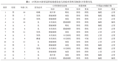 15例2019新型冠状病毒感染患儿的临床资料及胸部CT影像变化