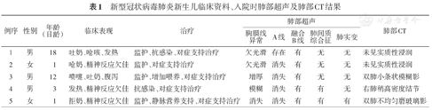 | 5 | 女 | 1 | 拒奶、精神反应欠佳 | 监护、静脉营养支持、对症支持治疗 | 消失 | 消失 | 有 | 有 | 有 | 双肺不均匀磨玻璃影 |