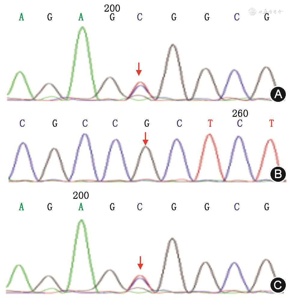 患儿 男,4岁主要临床表现为1岁后癫痫发作、发育迟滞和智力障碍。全外显子组测序提示两者在YWHAG基因的第2外显子均存在c.170G>A/p.R57H新的杂合错义变异,导致14-3-3γ蛋白第57位的精氨酸替换为组氨酸。患儿的c.170G>A变异遗传自母亲,而在外祖父母中未检测到,该变异为新自发变异,且在该家系内进行传递。患儿和母亲均为癫痫伴智力障碍,但临床高度怀疑发育性癫痫性脑病56型。