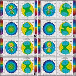 注:KmF示角膜前表面曲率,KmB示角膜后表面曲率,TCRP示总角膜曲率;ACA示角膜前表面散光度数,PCA示角膜后表面散光度数,TCA示角膜总散光度数;AL示眼轴长度,CT示角膜厚度