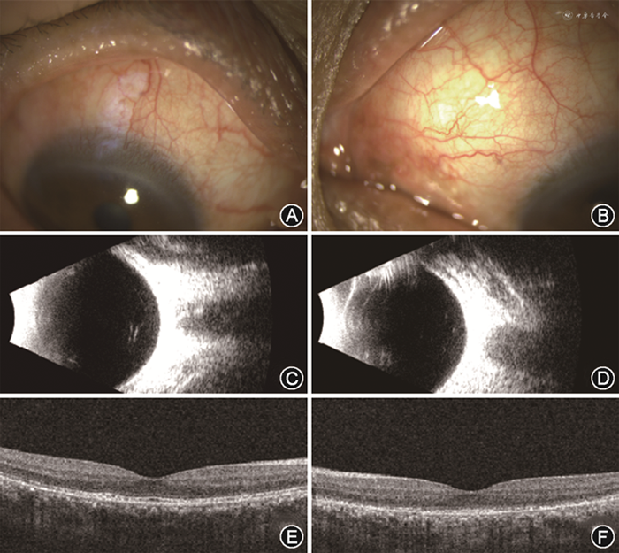 原发性眼附属器淋巴瘤是指原发于眼睑、结膜、泪腺和眼眶软组织的恶性肿瘤,好发年龄为50~60岁,占所有结外淋巴瘤的5%~10%[1],最常见的类型是结膜黏膜相关淋巴组织(mucosa associated lymphoid tissue,MALT)淋巴瘤[2]。原发性眼附属器淋巴瘤眼内浸润极为罕见,Tagami等[3]和Pelegrín等[4]曾报道同时累及眼眶和眼内组织的淋巴瘤病例。Sarraf等[5]曾报道了1例MALT淋巴瘤侵犯脉络膜的病例,患者因左眼视力进行性下降就诊,眼科检查显示双眼进行性结膜浸润,口服泼尼松(60 mg/d)治疗效果不佳。随着病情发展,患者左眼出现渗出性视网膜脱离,右眼脉络膜有白色浸润灶。眼眶MRI显示左眼弥漫性浸润的眼内和眼外病变,延伸至视神经周围。结膜活检示MALT淋巴瘤。该患者进行了局部放疗,临床效果显著。