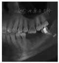 面暂封物完整,边缘密合,叩痛(-),不松动,牙龈未见明显异常。左下唇无肿胀不适等异常,有痛觉。曲面体层X线片及锥形束CT片示: