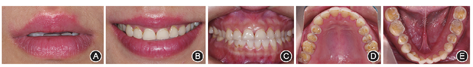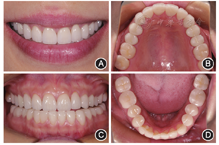 面像;C:上前牙唇侧树脂贴面牙体预备;D:正面