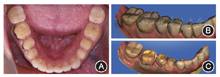 患者女性,32岁,于2017年1月就诊于青岛市口腔医院修复科。自述后牙食物嵌塞及牙本质敏感,上前牙变短、下前牙排列不齐、牙齿颜色不佳,要求改善美观和功能;自幼喜食酸的水果和坚果,有酒后呕吐病史,有关节卡住及耳后区不适病史,无关节弹响病史。