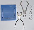 用于安装、拆卸橡皮障。由柄、喙和中央定位器组成。将喙部插入橡皮障夹臂上的孔中,用以撑开夹子;手柄中部的定位装置用以保持橡皮障夹某种撑开度的状态,以利握持和安装,方便术者和助手间传递。