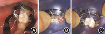 (5)放置咬合垫:橡皮障安装后,患者需要保持张口接受治疗。为减轻患者张口的疲劳,可于非治疗侧后牙区放置咬合垫,支撑咬合。