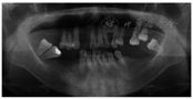 支托就位良好。用蜡记录咬合关系,完成义齿制作(图5)。义齿戴入操作方便,患者对义齿较满意(图6),由于无法拍摄口内照,故用戴入义齿的曲面体层X线片示意(图7)。修复后18个月复查,义齿就位良好,无疼痛不适。
