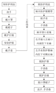 防护用品的正确穿戴至关重要,医院感控管理部门可建立规范的防护用品穿戴流程(图1),加强对医务人员培训,要求所有人员熟练掌握并严格执行。所有医务工作人员(含保洁和保安人员)须根据不同工作岗位采取相应级别的防护措施[3],正确穿戴防护用品,并设定专人进行督查。