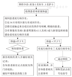 预检过程中重点检测患者和家属体温并对流行病学史进行询问和记录,通过预检的患者才可挂号,候诊区仅允许患者本人有序候诊(儿童患者只允许1名家长陪同),家属在候诊区外或院外等候。不明原因发热的患者须即刻前往就近定点发热门诊进行筛查。