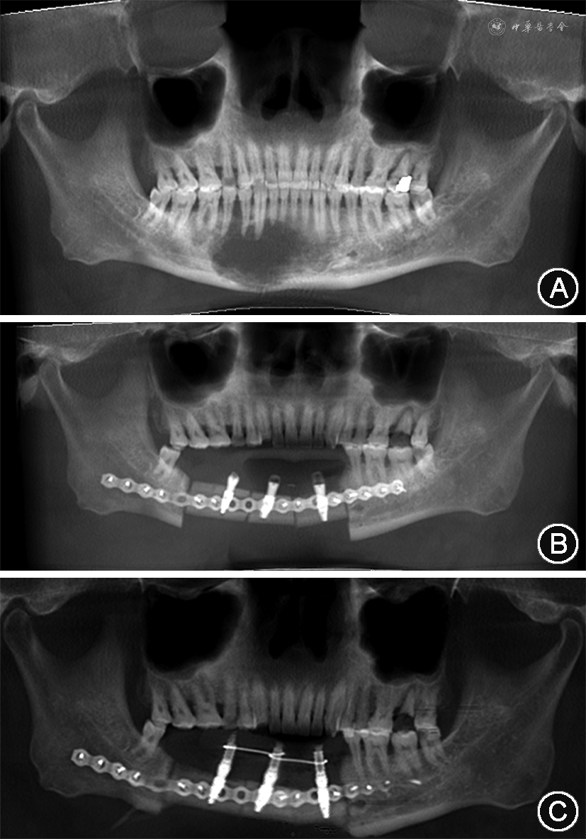 4. 治疗及修正诊断:本例颌骨与牙列同日重建术获得重庆医科大学附属口腔医院伦理委员会批准(批准号:2021年伦审019号),患者签署了知情同意书。
