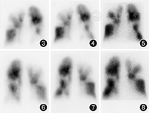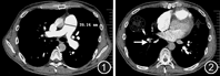 患者男,51岁,因"活动后气促5年"于2016年6月28日入院。患者5年前无明显诱因始出现活动后气促,上楼梯及快步行时明显,外院行胸部CT肺动脉造影示多发肺动脉栓塞,右心导管检查平均肺动脉压力58 mmHg(1 mmHg=0.133 kPa),诊断为"CTEPH"。给予波生坦片125 mg,2次/d联合华法林钠片,根据国际标准化比值(INR)调节剂量。规律治疗1年,INR波动于1.7~2.2,仍觉活动后气促明显,步行1层楼梯即感明显气促。遂转入我院,加用西地那非25 mg,3次/d,规范联合治疗3个月后症状仍无改善,为进一步治疗收入院。患者既往史、个人史及家族史均无特殊。入院辅助检查:(1)CT肺动脉造影:主肺动脉及左右肺动脉干增宽。双肺动脉多发充盈缺损,右上、双下肺动脉多发狭窄(图1,图2)。(2)肺通气灌注/显像:可见双肺多发灌注功能受损,与通气显像呈不匹配性改变,符合肺栓塞表现;右上肺野及双下肺血流灌注明显减少,主肺动脉干及左右肺动脉干增宽,拟诊断为肺动脉高压(图3,图4,图5,图6,图7,图8)。(3)心脏彩色多普勒超声:右心房及右心室增大,可见三尖瓣反流(中度),估测肺动脉收缩压为98 mmHg;二尖瓣反流(轻度);左心室收缩功能未见异常。(4)下肢静脉彩色超声:双下肢深静脉血栓栓塞声像:左腓静脉后一条不完全栓塞;右小腿一肌间静脉完全栓塞。腹部超声未见明显异常。(5)肺功能:通气功能正常、弥散功能轻度下降。(6)睡眠呼吸监测:呼吸暂停低通气指数为12次/h;风湿免疫学检查及凝血功能检查均阴性;D-二聚体(ELISA法): 188 μg/L(68~494 μg/L)。入院诊断为CTEPH,右心房、右心室扩大,心功能Ⅲ级,下肢深静脉血栓形成。