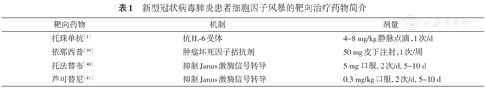 新型冠状病毒肺炎患者细胞因子风暴的靶向治疗药物简介