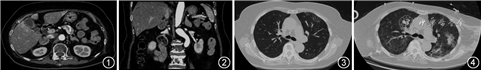 入院第16日(2019年10月10日)开始给予奥曲肽0.1 mg 1次/12 h皮下注射抑制ATCH水平,当日(尚未注射)患者即突发喘憋,脉氧饱和度75%,予面罩吸氧10 L/min,后无创呼吸机辅助通气,同时利尿、扩血管治疗仍恶化,予气管插管后第二日转入呼吸监护室。转入后查外周血T辅助淋巴细胞计数为51.5个/μl(正常参考值406~1 612.0个/μl),LDH为724 U/L,降钙素原(procalcitonin,PCT)为0.55 μg/L,(1, 3)-β-葡聚糖(G实验)为175.80 pg/ml(>100 ng/L为阳性),血清半乳甘露聚糖检测阴性。复查胸部CT(图4)提示双肺磨玻璃病灶及实变较前进展,伴小叶间隔轻度增厚。血清巨细胞病毒(cytomegalo virus,CMV)核酸定量(CMV-DNA)5.45×103 拷贝数/ml(正常参考值<500拷贝数/ml)。支气管肺泡灌洗液(bronchoalveolar lavage fluid,BALF)检测白细胞分类:巨噬细胞17%、中性粒细胞81%、淋巴细胞2%,镜检提示大量耶氏肺孢子菌(pneumocystis jiroveci)包囊,培养提示铜绿假单胞菌,CMV-DNA定量 6.59×105 拷贝数/ml。BALF的高通量测序:高置信度阳性指标:人细小病毒B19型(检出序列数17 141)、CMV(检出序列数81)、肺炎链球菌(检出序列数2 143 139)、丙酸棒状杆菌(检出序列数350 053)、金黄色葡萄球菌(检出序列数116 247)、肺炎克雷伯菌(8 904)、耶氏肺孢子菌(11 431)、白色念珠菌(378),中置信度阳性指标:铜绿假单胞菌(检出序列数1 416)。经中心静脉导管血培养提示人葡萄球菌,同时经外周静脉血培养阴性,考虑此病原为污染可能。结合PCT水平、BALF病原结果和影像学,考虑细菌、CMV和肺孢子菌混合的肺部感染、CMV血症。