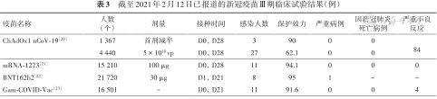 截至2021年2月12日已报道的新冠疫苗Ⅲ期临床试验结果(例)