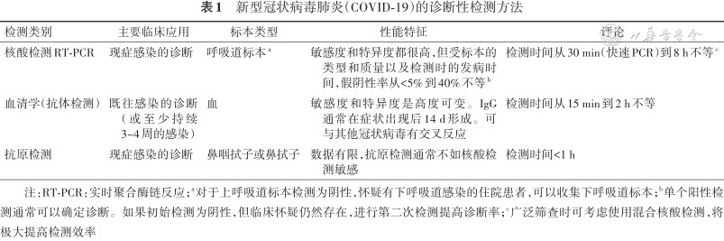 新型冠状病毒肺炎(COVID-19)的诊断性检测方法