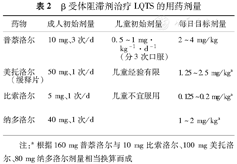 是一线治疗药物。无活动性哮喘等禁忌证的患者推荐使用,包括QTc间期正常而基因诊断阳性者。目前尚无充分证据提示是否应优先使用高度心脏选择性的β受体阻滞剂,但对哮喘患者则应优先选择此类β受体阻滞剂。绝大多数LQTS患者,首选普萘洛尔,对不能耐受或不能坚持服药者,可给予长效制剂,如纳多洛尔、美托洛尔缓释片、卡维地洛、阿尔马尔等。成人应避免使用美托洛尔普通片剂[14]。推荐使用根据年龄和体质量调整后的最大耐受剂量,应用中应逐渐加量并避免突然停用(表2)。