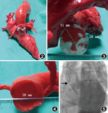 近年来,3D打印已逐渐应用于社会生活的各个领域,在医学领域,3D打印在骨关节外科、神经外科、整形外科及口腔外科有较长时间的应用,而在心血管领域尚处于起步阶段。此外,由于TAVI的特殊性,国内外罕见相关报道。德国学者Schmauss等[5]在2012年报道过1例将3D打印应用于TAVI术前评估的病例,但其打印的模型仅为钙化的主动脉壁,并不包含有病变的主动脉瓣,所以仅能用于术前相关参数的体外测量和模拟支架术,而不能直观显示主动脉瓣的病变形态。