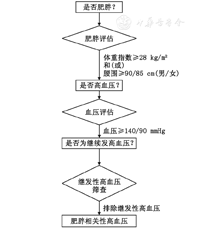 肥胖与高血压常合并存在,因为高血压发病隐匿,二者因果关系难以确定。此外,还需排除其他继发性高血压,如内分泌疾病、大动脉炎、肾脏疾病、睡眠呼吸暂停综合征及妊娠等。肥胖相关性高血压的诊断流程参见图2。
