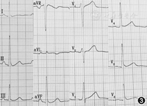 患者于2015年5月21日在局麻下行心内电生理检查和射频消融手术,术中证实存在2条旁路,1条位于右侧游离壁,另1条位于左后侧壁,射频消融术后观察15 min重复电生理检查旁路未恢复,无心动过速复发,手术成功,术后心电图示正常(图3)。