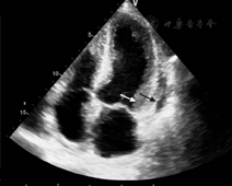 进一步完善检查,血沉81 mm/h,C反应蛋白92.3 mg/L (正常值<8.0 mg/L)。免疫球蛋白七项:IGA 5.5 g/L(正常值0.7~3.8 g/L),IGE 770.6 g/L (正常值<100 g/L),IGG、IGM、总补体、补体C3和补体C4正常。髓过氧化物酶抗中性粒细胞胞质抗体(MPO-ANCA)、丝氨酸蛋白酶3抗中性粒细胞胞质抗体(PR3-ANCA)、抗核抗体、抗ENA抗体谱、抗dsDNA抗体和抗脑组织抗体均为阴性。便常规、肝功能、肾功能、甲状腺功能、凝血功能均未见异常。超声心动图示心内膜略增厚,左心室内血栓前状态[1],左心房增大,室间隔增厚(12.2 mm),左心室舒张功能减退,左心室射血分数(LVEF) 55%,心包积液(少量)伴纤维素渗出(图3)。支气管肺泡灌洗液的细胞中嗜酸粒细胞占97%,提示存在肺部嗜酸性粒细胞浸润。复查胸部CT较1个月前无明显变化。颅脑磁共振成像示双侧半卵圆中心、右侧侧脑室后角见斑点状高信号影。肌电图示右腓总神经复合肌肉动作电位(compound muscle action point,CMAP)未测出,左腓总神经、双胫神经远段CMAP波幅下降,左三角肌、双股四头肌示肌源性损害,提示患者存在神经及肌肉损害。肌肉、神经、皮肤活检病理示左腓肠肌中度肌源性损害,左腓总神经损害以髓鞘改变为主,筋膜及皮肤可见间质小血管壁炎症细胞浸润,以淋巴细胞为主,偶见嗜酸性粒细胞。骨髓穿刺示嗜酸粒细胞增多,较成熟。基因分型未见FIP1L1-PDGFRα融合基因。荧光染色体原位杂交未发现FIP1L1/PDGFRα融合基因、未发现PDGFRB基因重排。