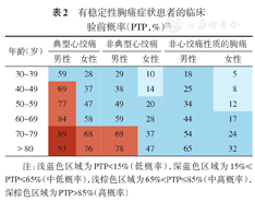 有稳定性胸痛症状患者的临床验前概率(PTP,%)[7]