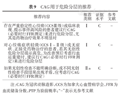 | 对CABG术后患者,可考虑冠状动脉CTA,作为 旁路移植血管通畅度的随访 | Ⅱb | C | - |