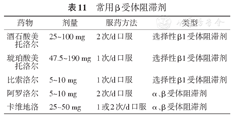 | 酒石酸美 托洛尔 | 25~100 mg | 2次/d口服 | 选择性 β1受体阻滞剂 |