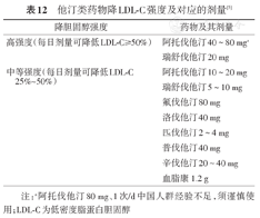 | 应用中等剂量他汀治疗不达标者,可调整他汀剂量或联合应用非他汀类调脂药物(如依折麦布10 mg、1次/d) | Ⅰ | B | 文献[5] | ||