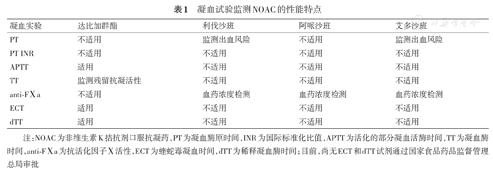 凝血试验监测NOAC的性能特点