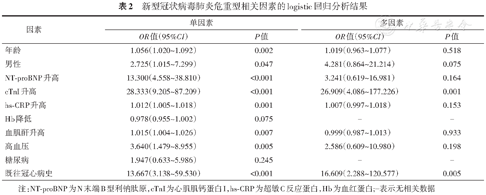 新型冠状病毒肺炎危重型相关因素的logistic回归分析结果